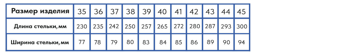 Таблица размеров
