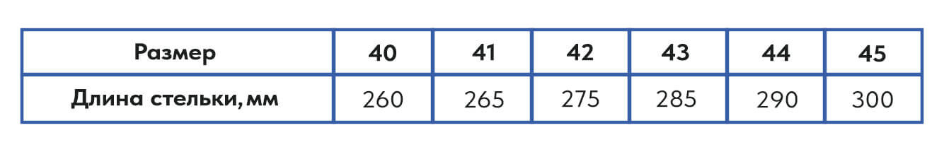 Таблица размеров